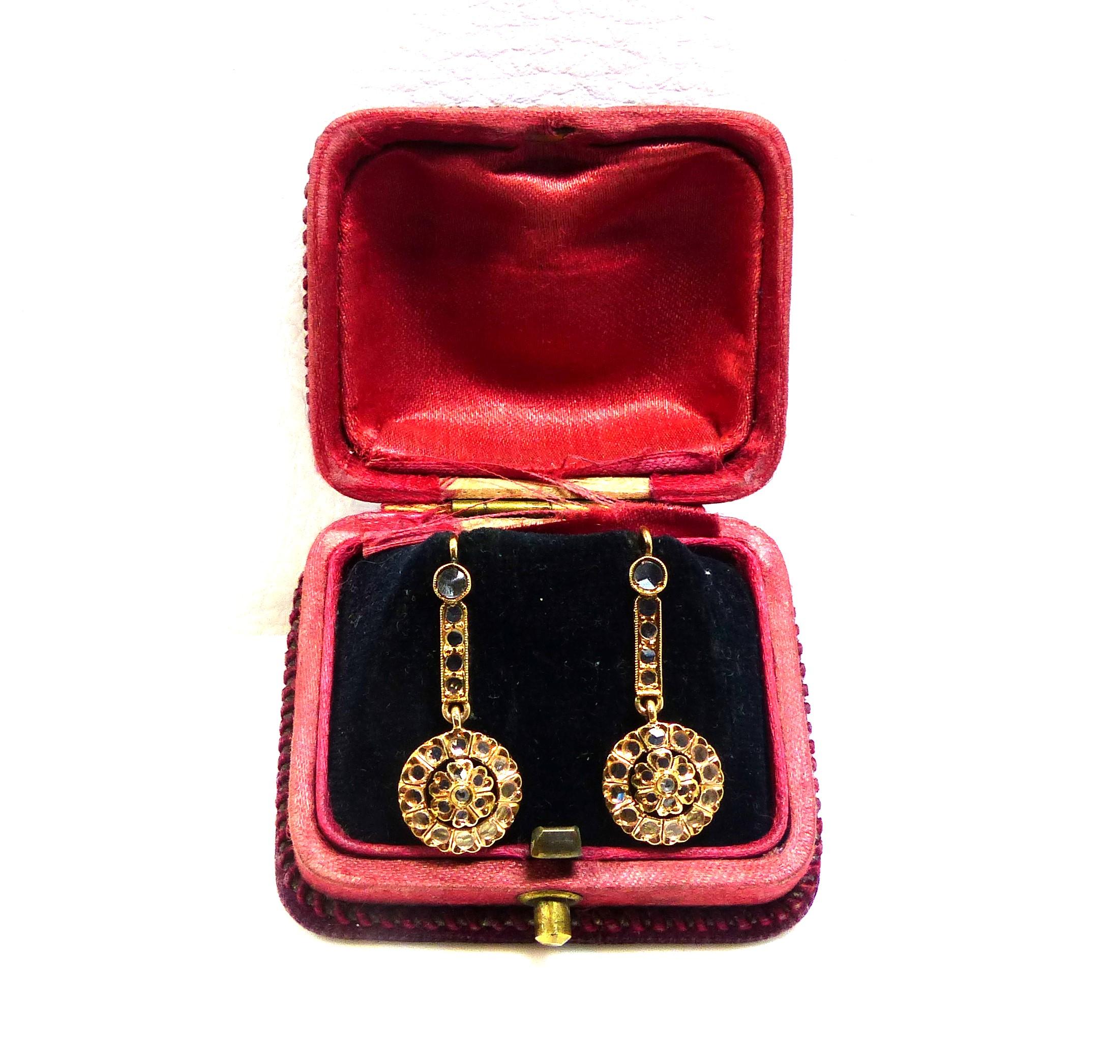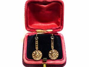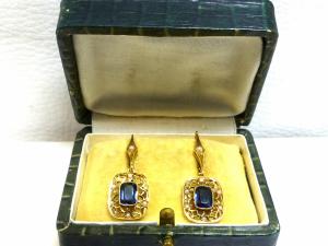 Pendientes Antiguos en Oro amarillo 18K y Zafiros Blancos.