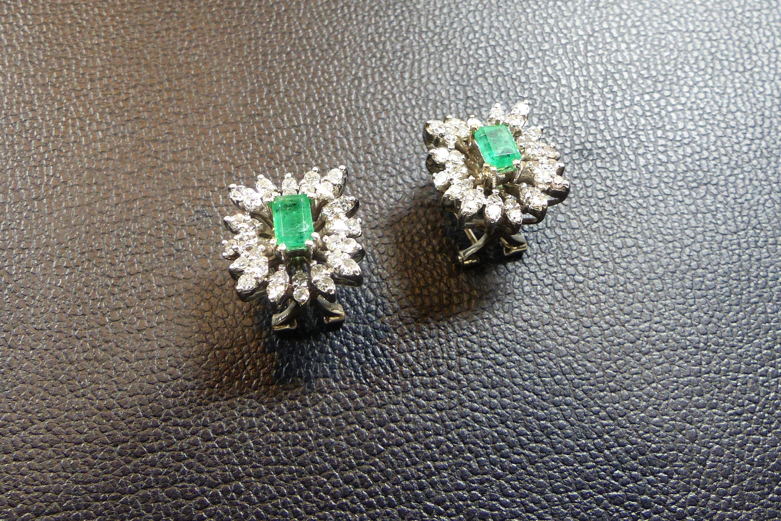 Pendientes Diamantes y Esmeralda Central en Oro Blanco 18K.